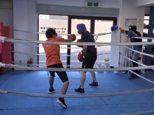 ヘッドギアをつけた相手を二人