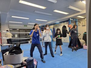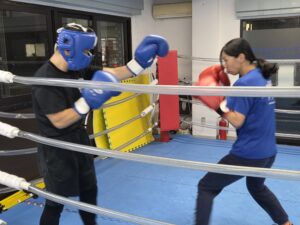 ヘッドギアをつけてディフェンス練習💦