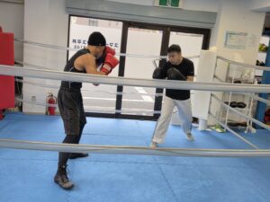 先日のスパーリング大会で 見事2勝目を飾った学生会員さん✌ まずは軽いトレーニン…